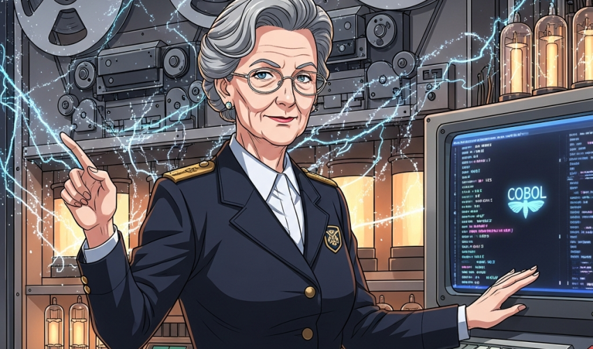 コンパイラの開発に続き、グレース・ホッパーはビジネス分野におけるコンピュータの可能性を強く信じていました。1950年代後半、彼女は米国国防総省が主導した、共通のビジネスデータ処理言語の開発委員会(CODASYL)の主要メンバーとして活動します。ここで誕生したのが、Common Business-Oriented Language、略して「COBOL」です。